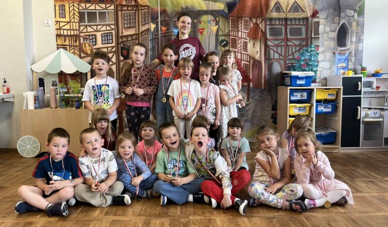 Po części artystycznej przyszedł czas na wyjątkowe chwile – rozdanie dyplomów i drobnych upominków. Każdy dyplom to symbol całorocznych postępów, zabawy, nauki i wspólnie spędzonego czasu.