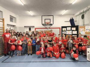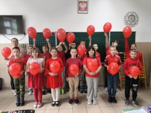 Przygotowanie czerwonych balonów symbolizujących solidarność z ideą kampanii.