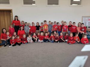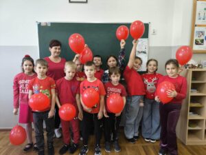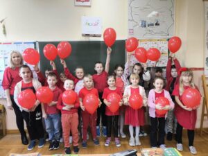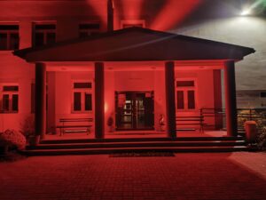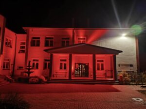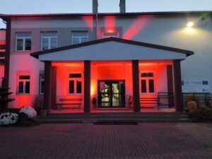 19.11.2025 r.- Wielki Finał zwieńczony podświetleniem budynku szkoły na czerwono.