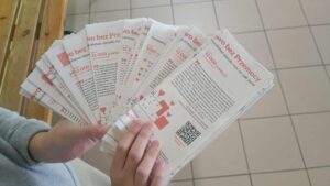 Rozpowszechnianie ulotek uświadamiających, że w życiu dzieci nie ma miejsca na przemoc.
