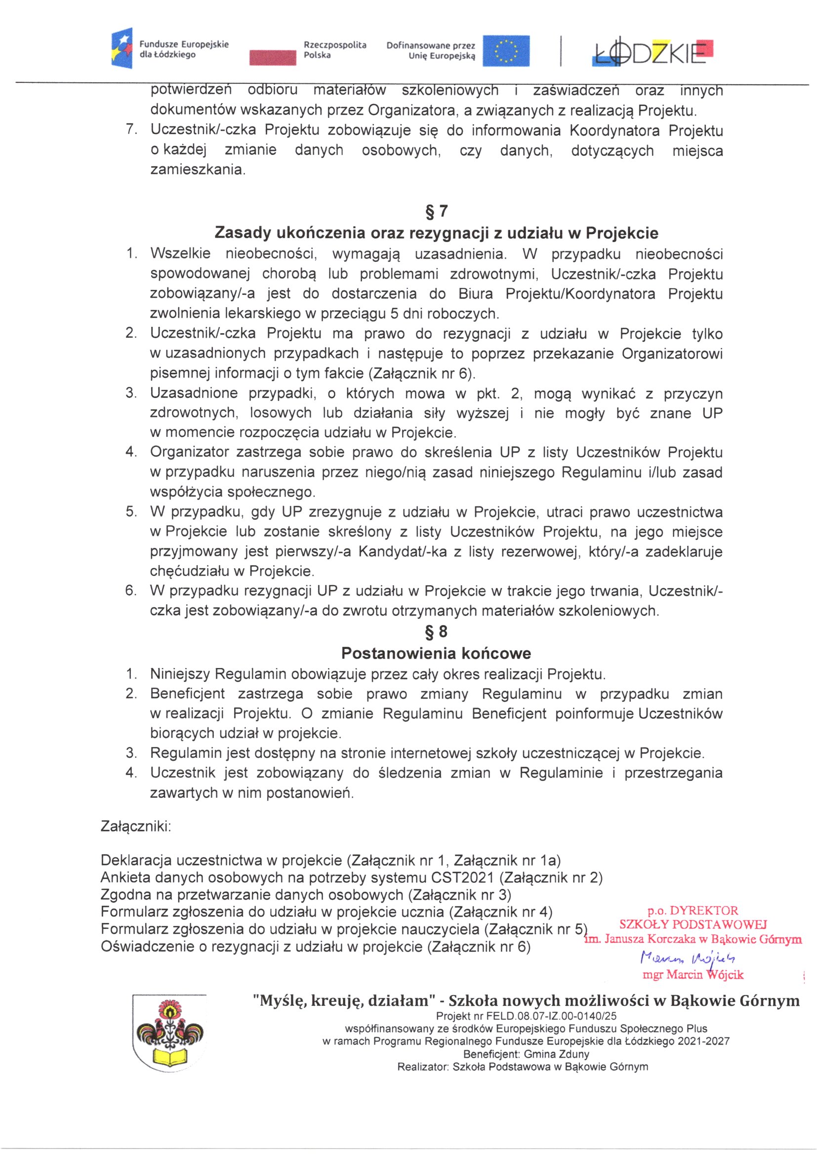 Załącznik nr 6. Oswiadczenie o rezyg nacji z uczestnictwa w projekcie